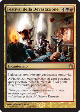 166: Una carta molto poco incisiva. Quando entra non fa nulla e al massimo locka qualche magia a chi gioca bianco, ma a tutti gli altri non influenzerà l'effetto. La perdità dei punti vita è un'arma a doppio taglio, anche se non arriverà mai a uccidere l'oppo né noi. Servirà solamente a indebolirlo e a indebolirci, rendendo entrambi deboli a spari come Pilastro in Fiamme.