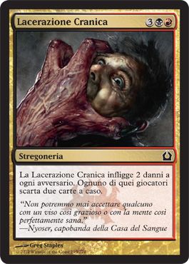 197: Praticamente un Memoricidio o una Estrazione Cranica con l'aggiunta del rosso. In più incounterabile. Forse una monocopia di side la vedremo nei mazzi jund e rakdos, ma non penso che vedrà molto gioco.