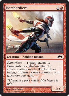 86: Una buona creatura per i mazzi aggro, che attaccando o spara un danno in stile Hellrider, o uccide una creaturina bloccante dell'oppo. Può trovare spazio in costruito, a me come carta piace molto.