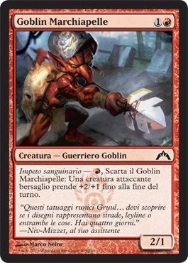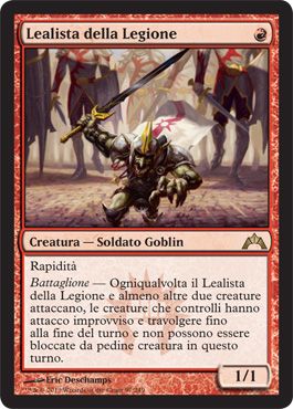 95: Attenzione! Leggere attentamente. Oltre a fornire rapidità alle nostre creature, questa carta costringe tutti i nostri cucciolotti ad attaccare a ogni combattimento e non a ogni turno. Che cambia? Beh, se fosse stato ogni turno, le creature si sarebbero potute risparmiare degli attacchi nelle fasi di combattimento addizionali generate da molte carte. Con questa carta in campo invece, si picchia nella maniera più ignorante possibile. Può trovare spazio nei mazzi goblin, che indubbiamente vedranno la luce entro l'uscita di Labirinto del Drago.