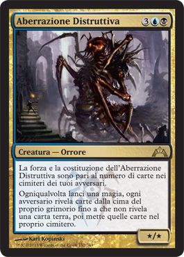Forza e costituzione variabile: La forza e costituzione di questa meravigliosa creatura dipende strettamente dalle carte nel cimitero del nostro oppo. Questo significa che più carte ci mandiamo, più diventerà grossa. Allo stesso tempo però potremmo rischiare di farla morire perché il nostro oppo ci tira giù una Cripta di Tormod o un Riposare in Pace. Da scendere quindi solo al momento giusto, proteggendola con counter dai removal e da altre minacce.