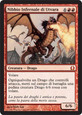 Ambientazione: I draghi su Ravnica sono pochi e molti di questi hanno trovato rifugio in vecchie zone cittadine ormai disabitate. Questa carta rappresenta un drago che si è rifugiato a Utvara, una zona ormai ridotta in macerie dopo la distruzione del Patto delle Gilde.